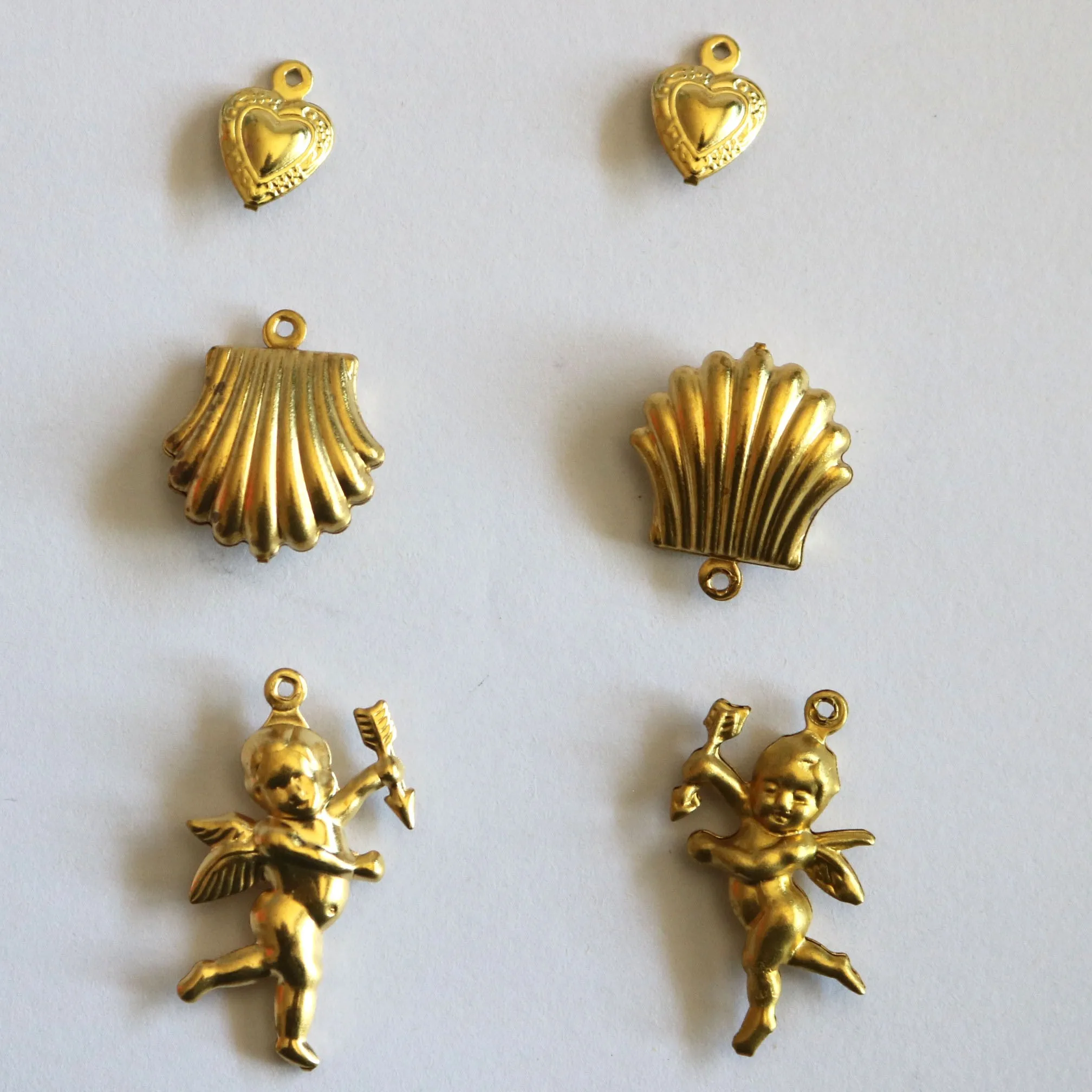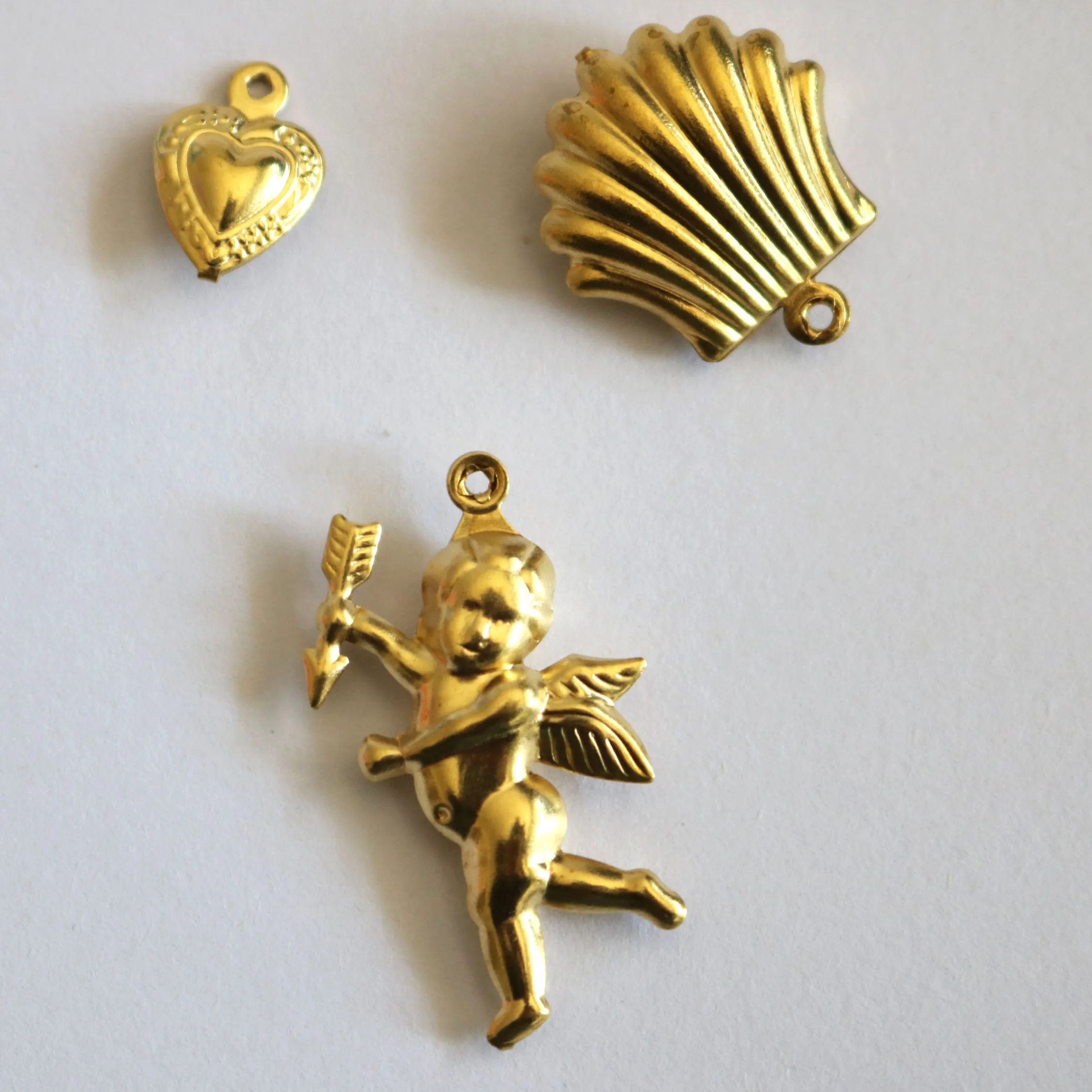 Wholesale Nickel-Free Handmade Brass Angel Charm Metal and Shell Jewelry Findings Pendant Charm for Jewelry Making